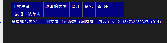 .版本 2 .子程序 _按钮1_被单击 编辑框2.内容 = 到文本 (到整数 (编辑框1.内容) × 2.384732489327e+014)