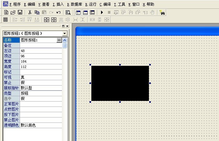 2、鼠标选择好【图形按钮控件】后,在程序窗口上直接绘制出控件,根据窗口的大小,可以改变图形按钮控件的大小,默认图形是空,如下图所示。