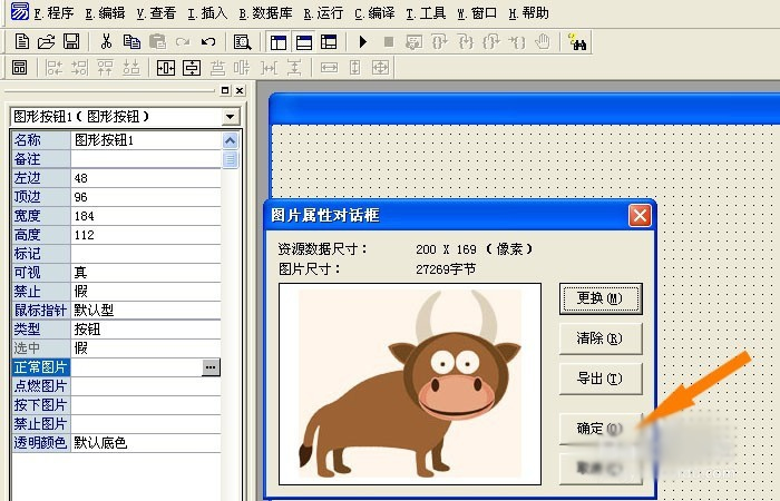 5、选择好图片后,鼠标左键单击【确定】按钮,这样图形按钮就有了一张图片了,可根据实际的需求来添加不同的显示图片,如下图所示。