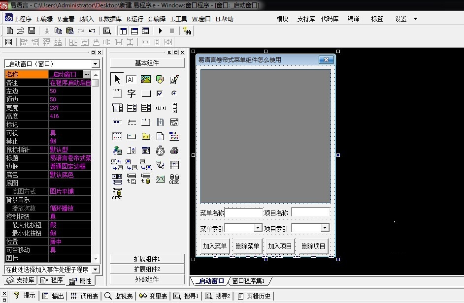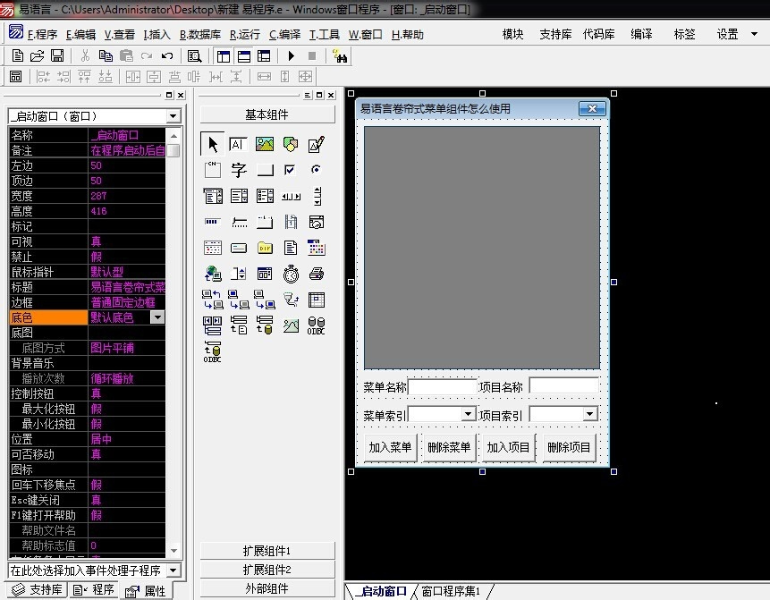 易语言卷帘式菜单组件使用教程