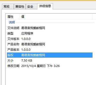 这里随便填写你想要的版权信息。编译后点击文件查看属性就是自己的版权啦