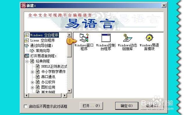 1、首先,运行易语言开发软件,并选择创建”Windows窗口程序“点击确定按钮