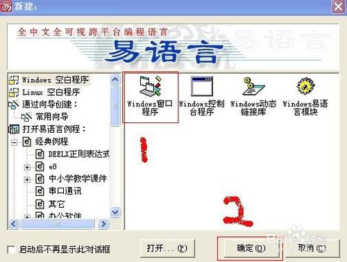 第二步选择“windows窗口”,然后点确定,就可以进行编程了。看下图