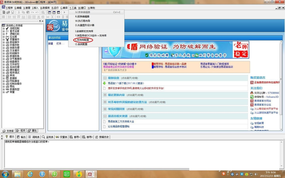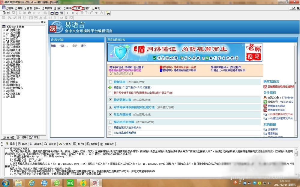 大家在使用易语言的时候,会发现自己没有教程里的那么多组件,仅有一些常用的,怎么办呢?