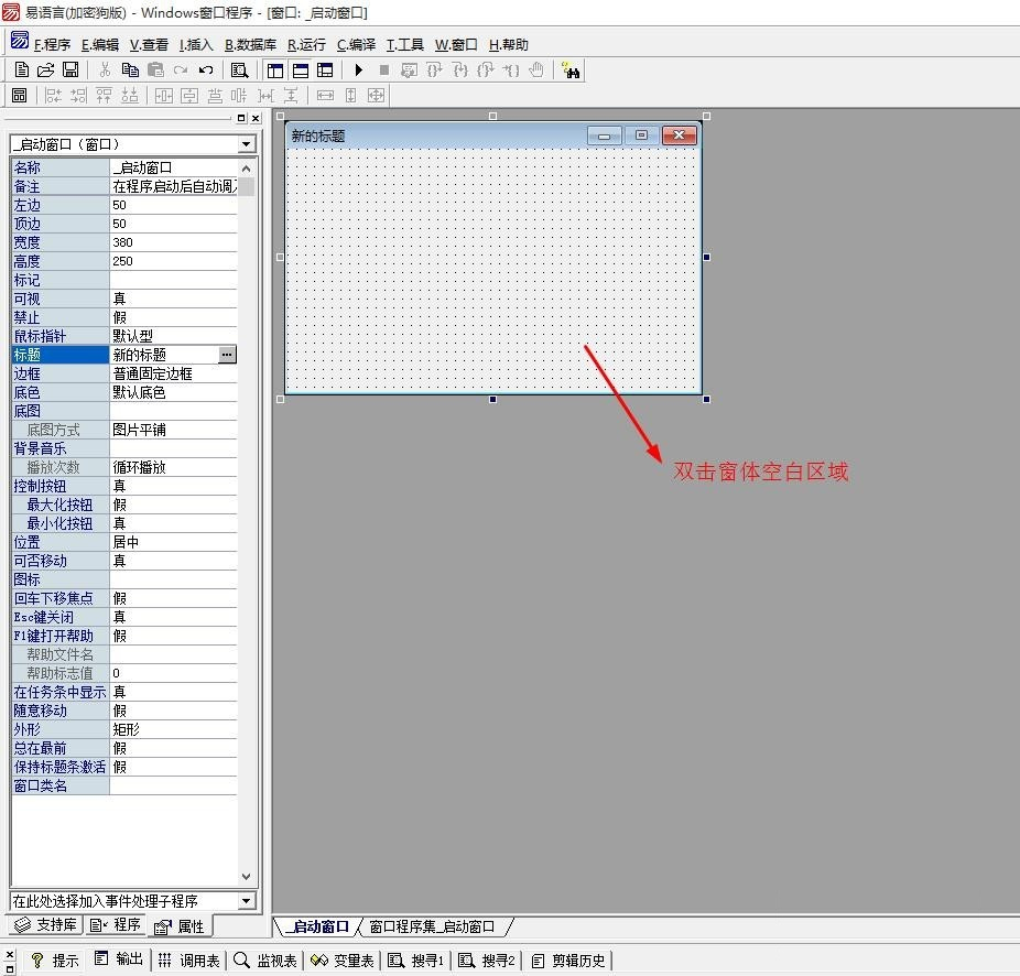 在新建的空白程序中,双击窗体的空白区域,进入代码编辑面板
