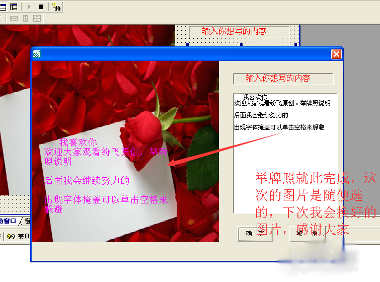 利用国语版易语言制作简单的举牌照,可以选择任何图片来宣传自己