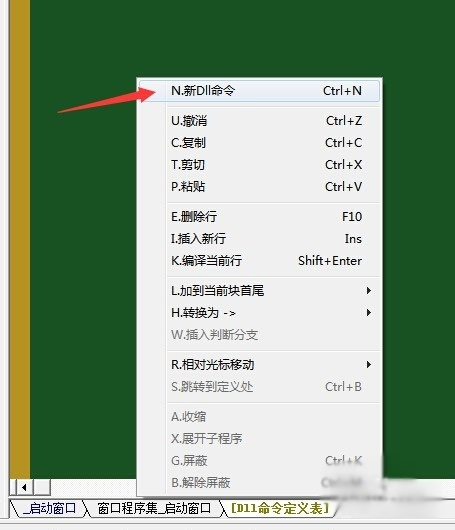 2、双击程序栏中的DLL命令 进入DLL编辑窗口