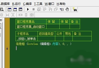 .版本 2 .程序集 窗口程序集_启动窗口 .子程序 _按钮1_被单击 信息框 (lstrlen (编辑框1.内容), 0, , )