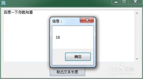 6、调试一下程序 就会显示出我们添加在编辑框中的文本长度