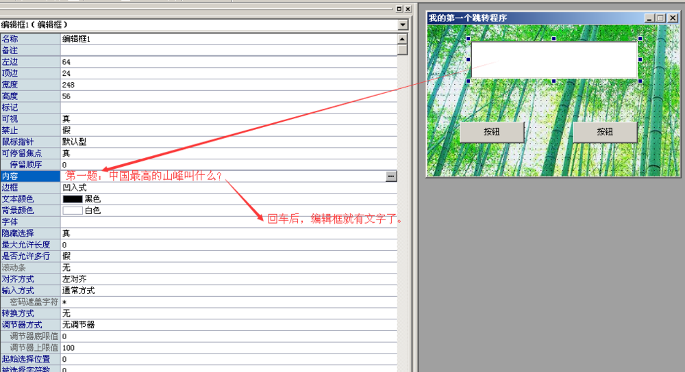 5、下面来修改按钮和编辑框的名称,如图所示:
