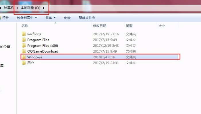 3.进入计算机C盘,点击Windows文件夹