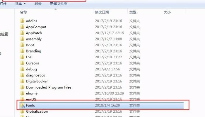 3.将字体文件粘贴进C:\Windows\Fonts文件夹,这是一个系统默认的字体安装文件夹。