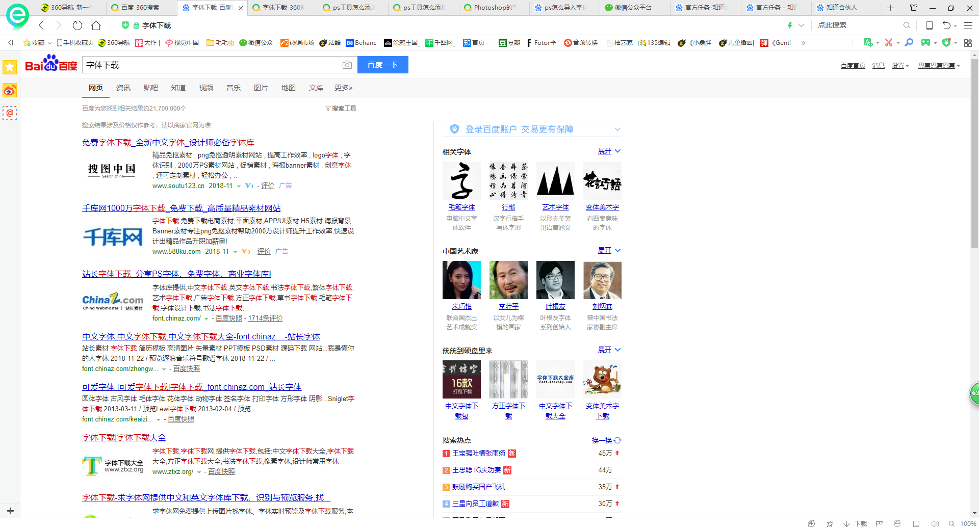 首先进入百度,下载所需用的某种字体。