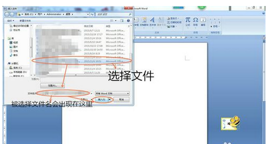 6.再次,在这个界面内,找到我们所要插入的目标文件,点击选择,选完后,点击“插入”。