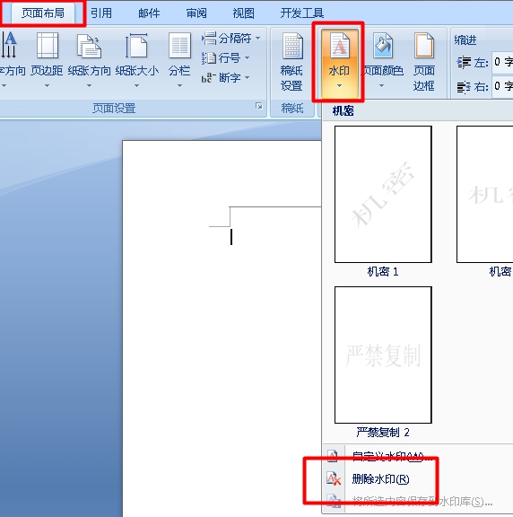 第二种 是以水印的形式出现,这样做:页面布局-水印-删除水印即可。