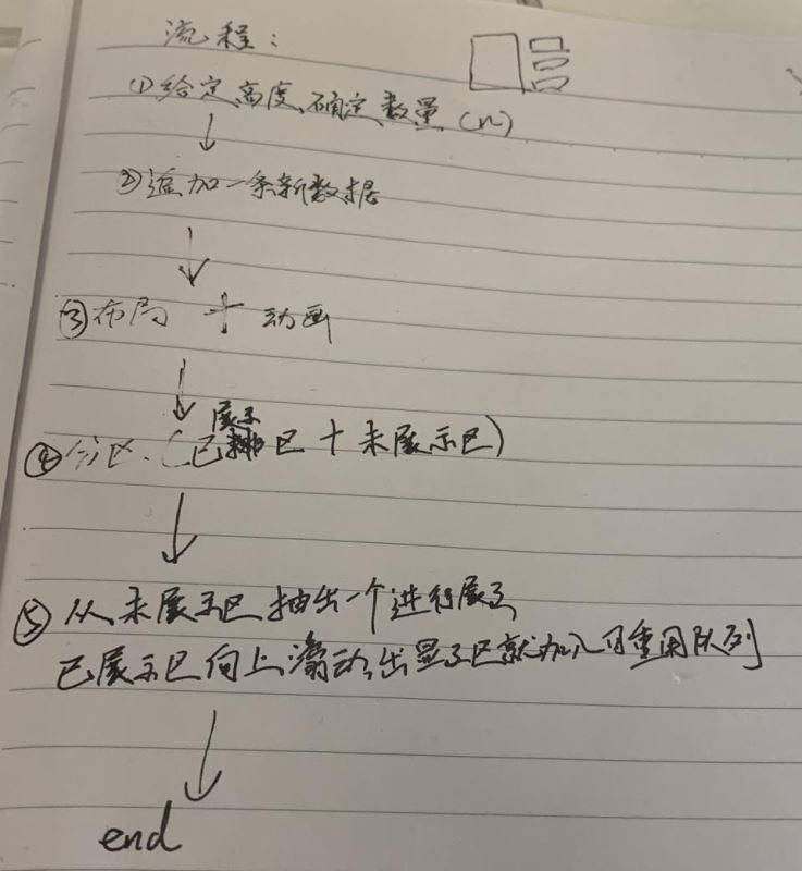追加一条新数据(由于需要动画处理, 当前数据动画完成后才能处理下一条数据,这里需要定义两个区:正在处理区和等待处理区)