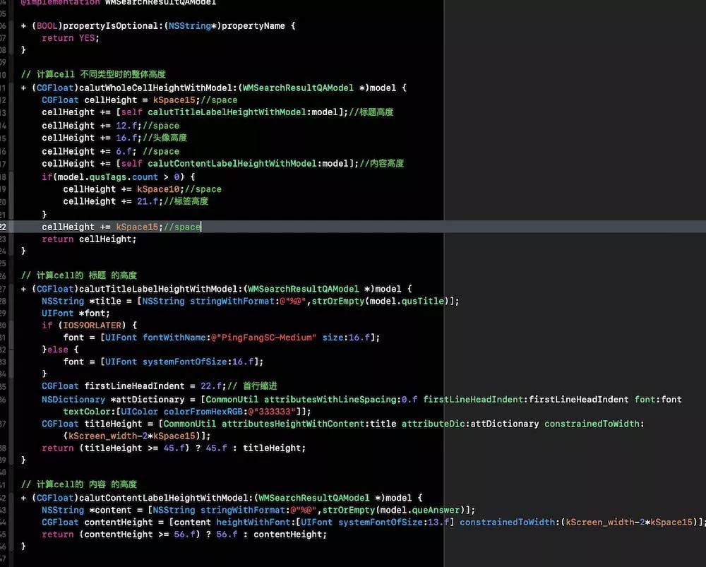 CGFloat cellHeight; = [WMSearchResultQAModel calutWholeCellHeightWithModel:model];