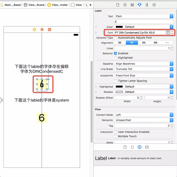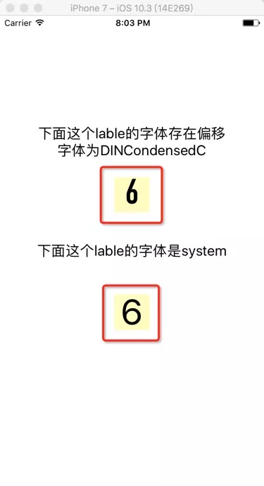 对比 system font 字体的 label,明显感觉这个 DINCondensedC 字体的内容是偏上的!(当然不用对比也能发现)。WTF!