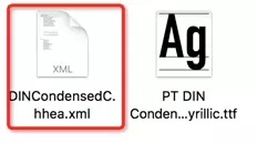 打开终端,输入:ftxdumperfuser -t hhea -A d PT\ DIN\ Condensed\ Cyrillic.ttf,前面的【ftxdumperfuser -t hhea -A d 】为指令,后面的为你的字体文件路径。最后回车,你会看到同级文件夹下回多出一个【DINCondensedC.hhea.xml】文件: