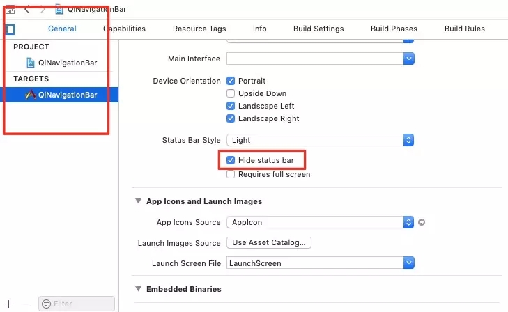 首先,在Targets->General->勾选中Hide status bar或者在info.plist里面 Status bar is initially hidden 设置为 YES;
