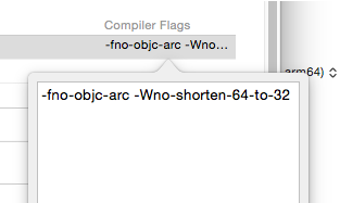 双击 文件, 在其中添加 -Wno-shorten-64-to-32 (这个关键在就是让编译器忽略 Implicit conversion loses integer precision: 'NSInteger' (aka 'long') to 'int32_t' (aka 'int') 警告)
