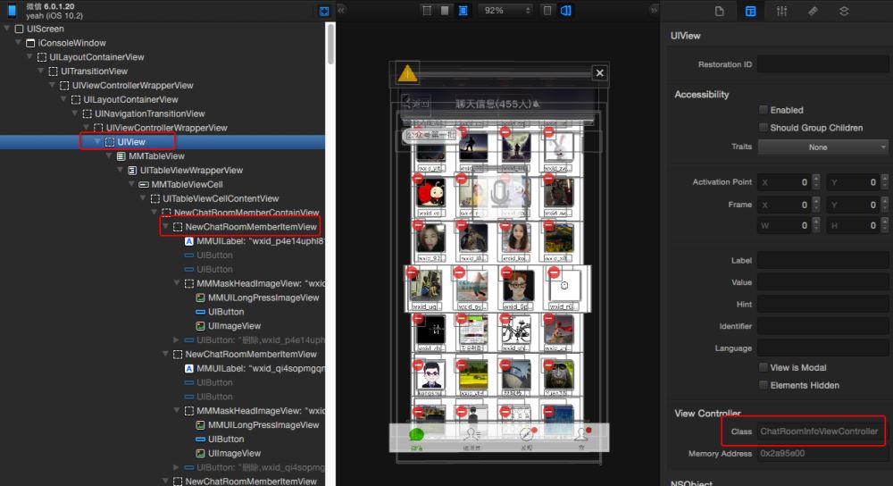 点击一个成员,就是调用- (void)openContactInfo:(id)arg1 这个函数,传入的就是成员。