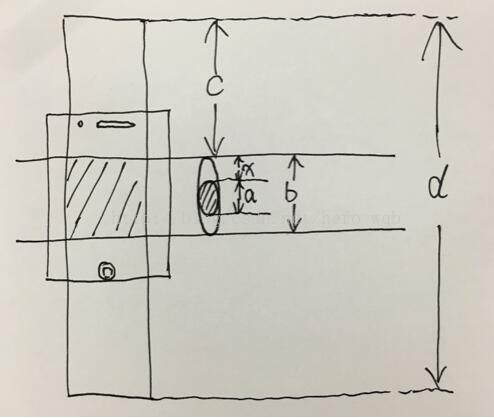 简单说一下计算逻辑,如上图(原谅博主的图)所示,其中b、c、d是已知的。首先计算滚动条的高度a,理想情况下它与整个滚动区域b的比值应该等于scrollView的展示区域b与scrollView的内容高度d的比值,就是 a/b = b/d,即 a = b*b/d,也是就代码中的“_scrollBar.barHeight = pow(tableView.bounds.size.height,2) / tableView.contentSize.height;”这句话。