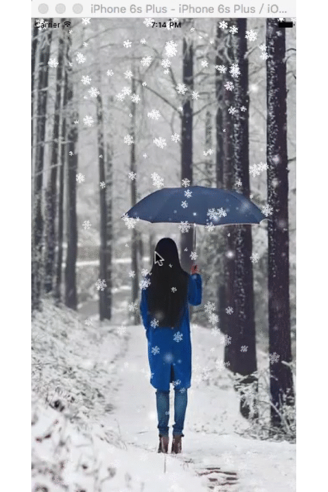 HHFSnowflakeFallingView *snowflakeFallingView = [HHFSnowflakeFallingView snowfladeFallingViewWithBackgroundImageName:@"snow_background" snowImageName:@"snow" initWithFrame:self.view.bounds];