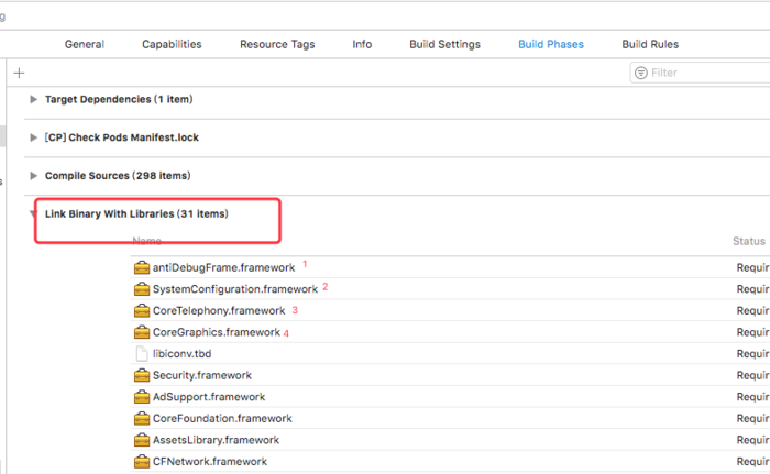 自己的库加载顺序:按照 Link Binary Libraries的顺序加载