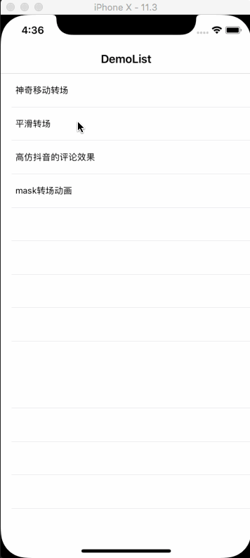 3.对于一些简单的转场动画(例如平滑转场),到此就已经完成了所有的转场任务.