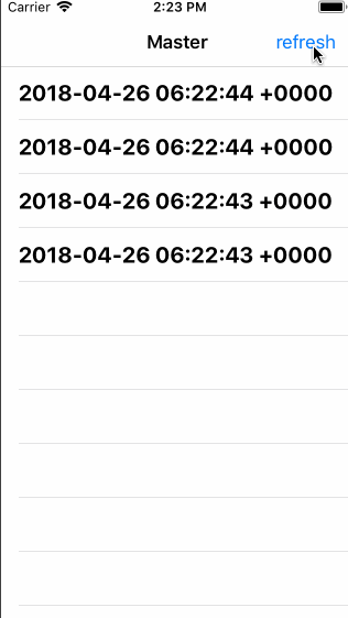 现在在下拉刷新之后,Cell内部的视图会有移动,类似的效果如下(为了方便展示,用按钮点击取代下拉刷新的操作):
