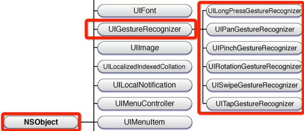 iOS 系统在 3.2 以后,他提供了一些常用的手势(UIGestureRecognizer 的子类),开发者可以直接使用他们进行手势操作。