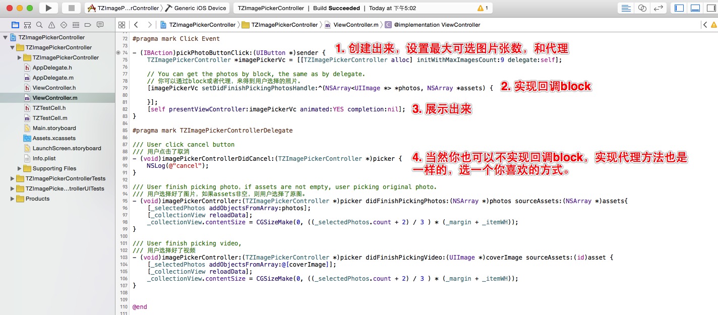 如果你喜欢手动导入,到github下载代码后,将TZImagePickerController文件夹拖入到你的项目中,再 #import “TZImagePickerController.h” 即可。