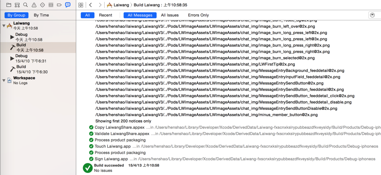 Xcode图形化操作挺好用的,不过知道一些命令行的操作会更佳。在下面这个地方看到Xcode编译的详细过程。