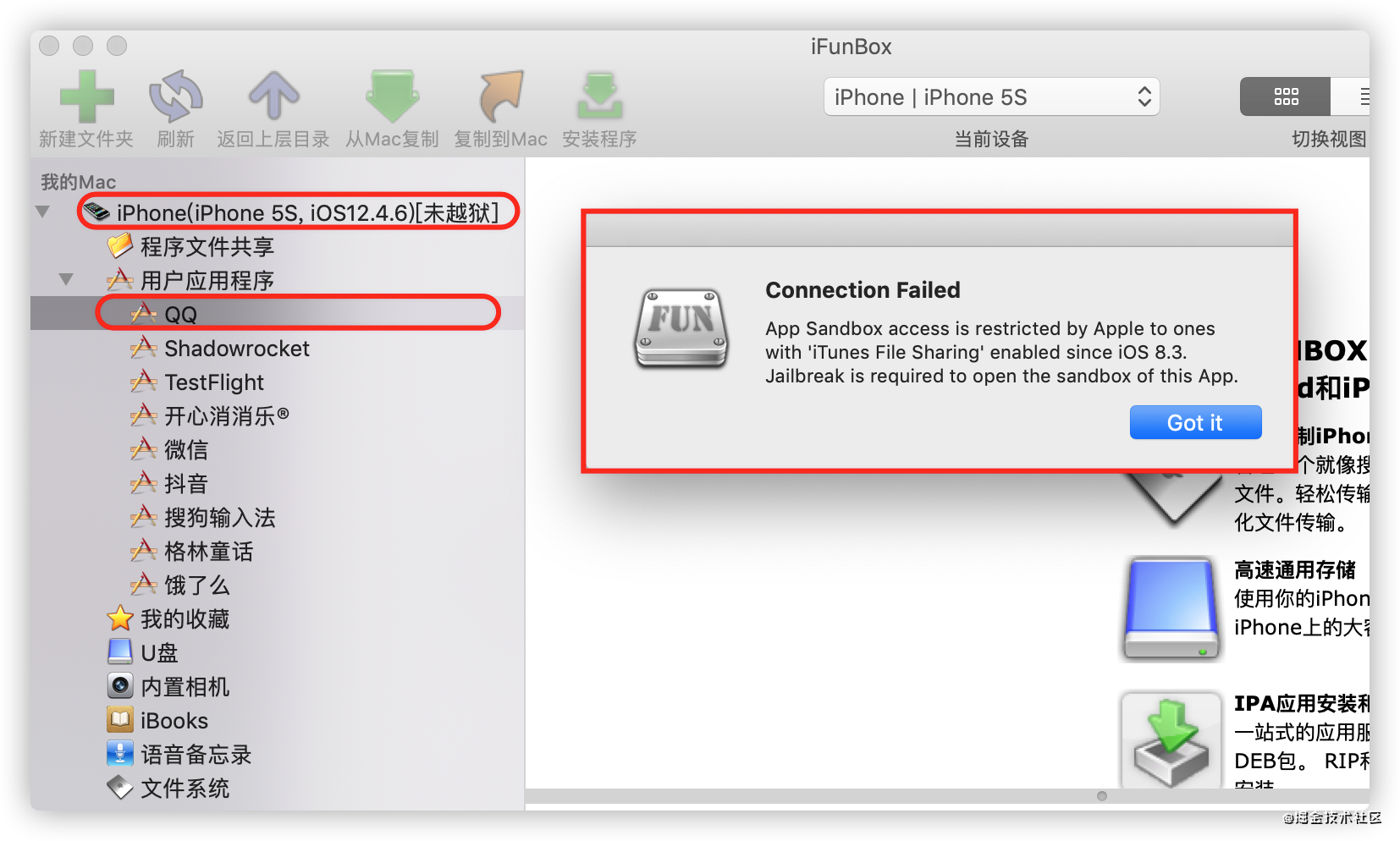 Mac需要安装1、【iFunBox下载地址】、【iFunBox官网】官网好像无法下载,可以到前面下载地址下载软件:它是