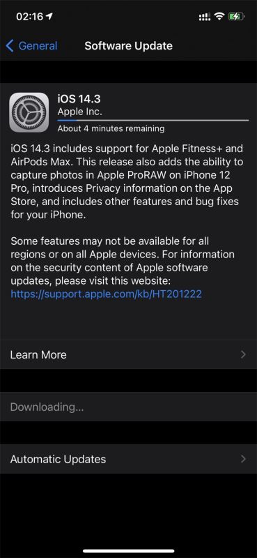 ios 14.3 rc 2 通过设置应用中的 ota 更新向开发者和公测用户提供。像往常一样,如果更新没有立即出现下载,请尝试继续检查。