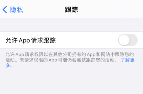 打开 iphone 设置-隐私-跟踪,将“允许应用程序请求跟踪”进行关闭即可。