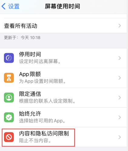 用户可以尝试前往 iphone -设置-屏幕使用时间-内容和隐私访问限制: