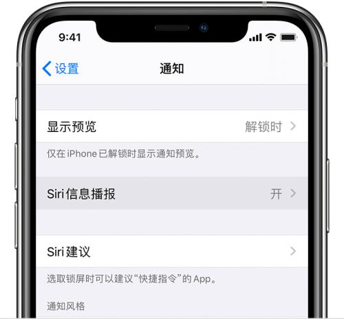 ·轻点 “通知”,然后轻点 “siri 信息播报”。