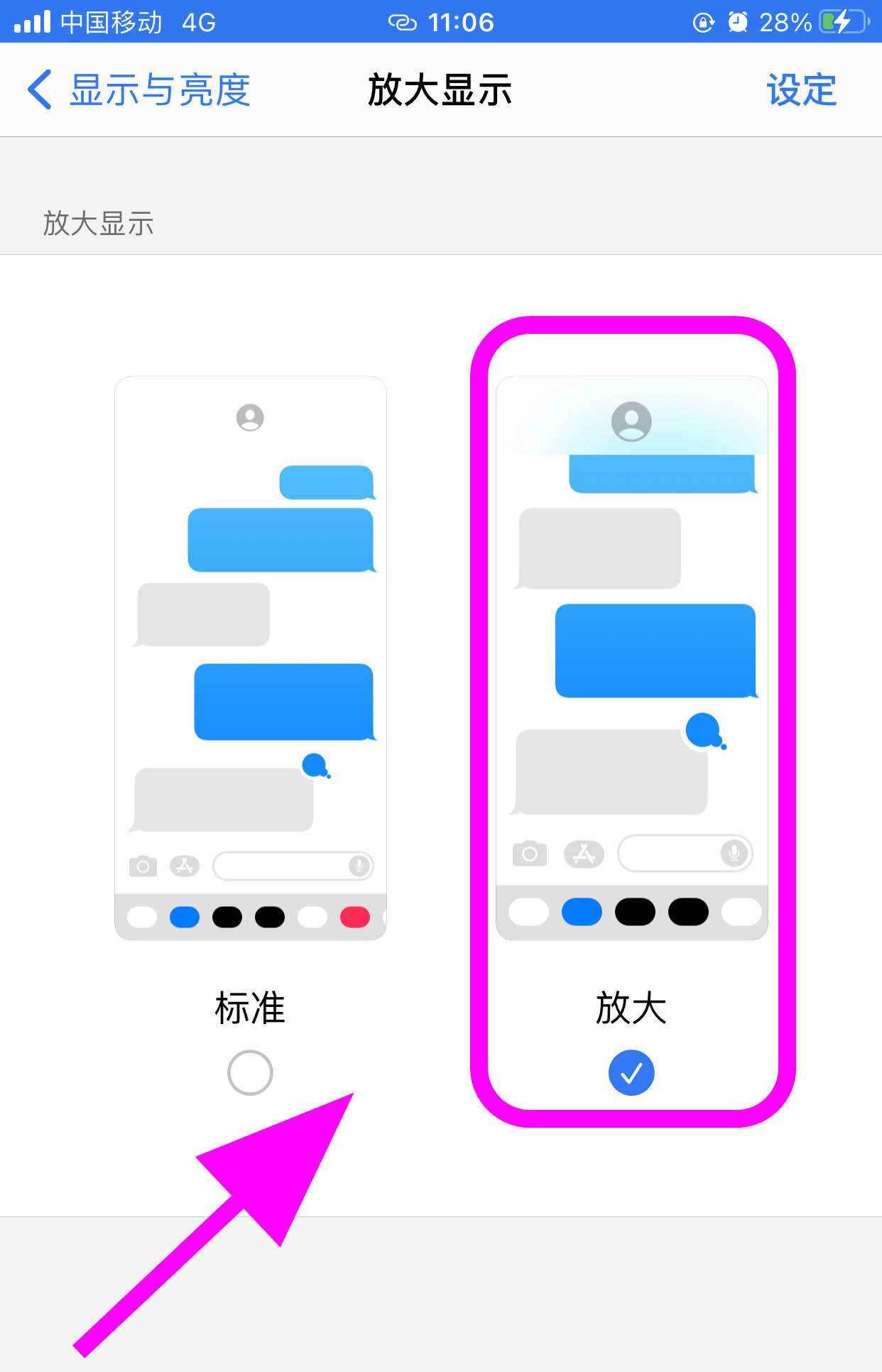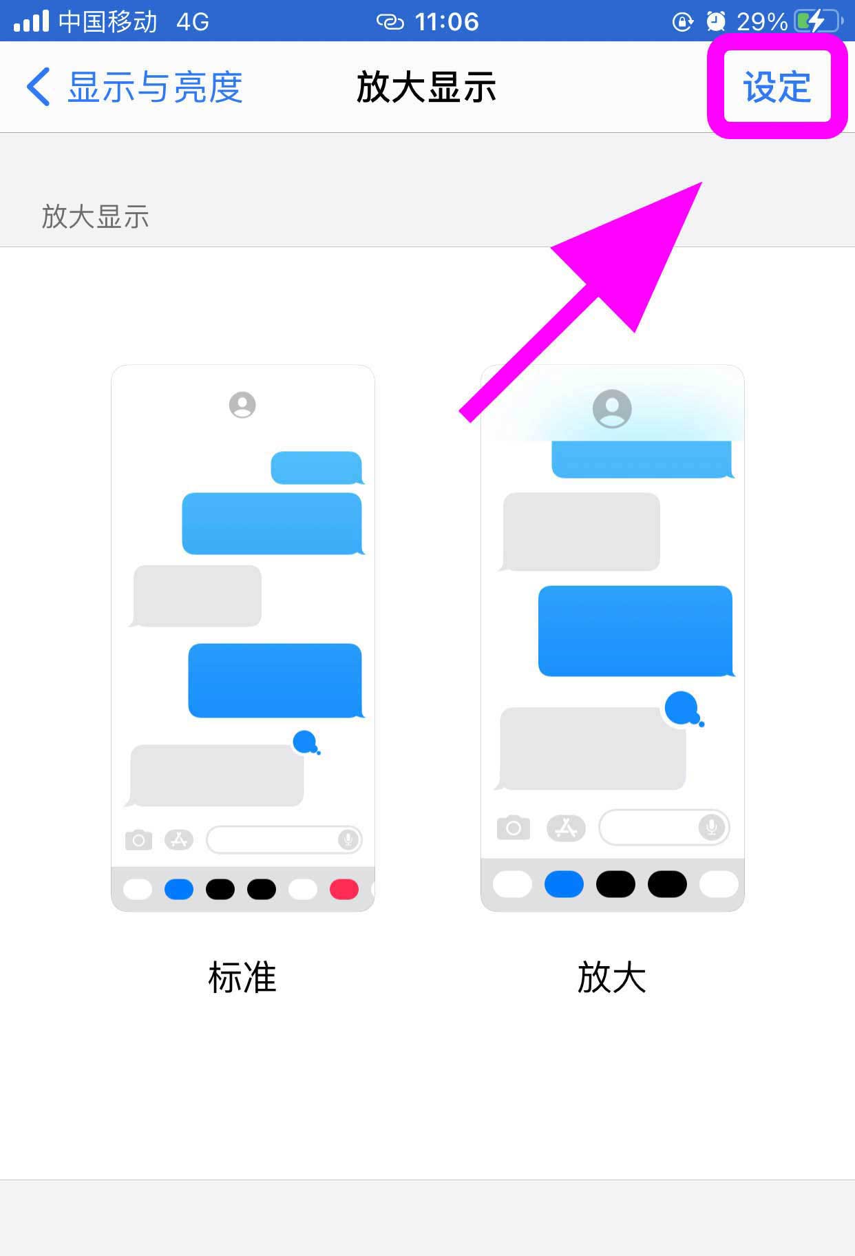 6、选择完毕后,点击右上角的【设定】,重启iphone手机,视图恢复,解决微信显示不全的问题;