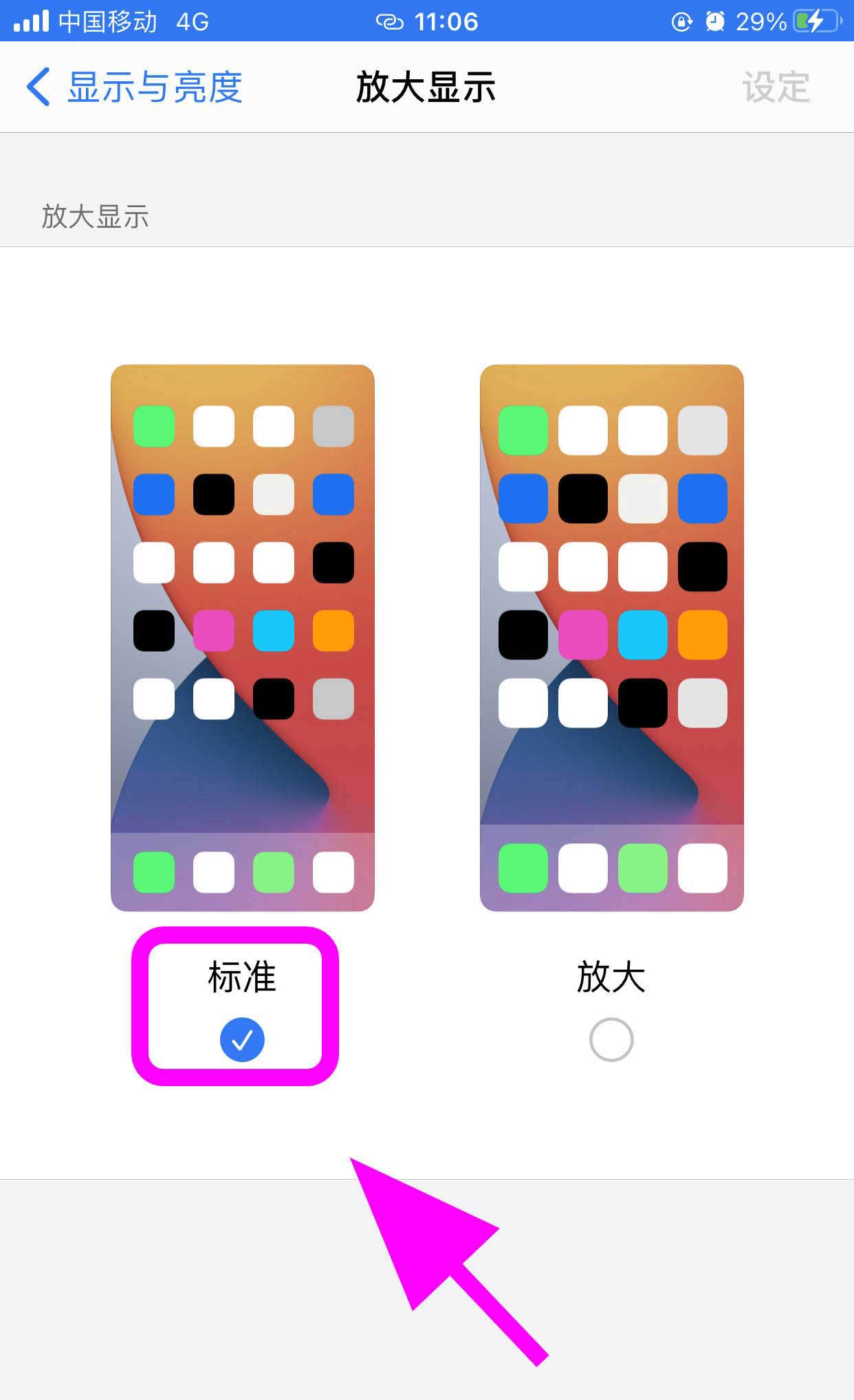 4、进入视图页面,一般出现这个问题是因为更新了ios 14后,视图被设置成【放大】;