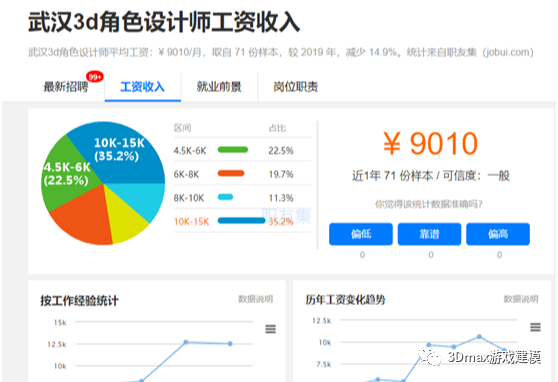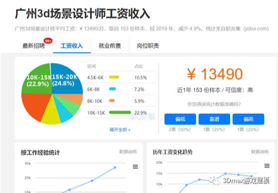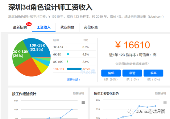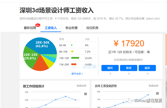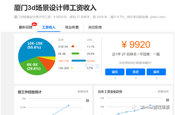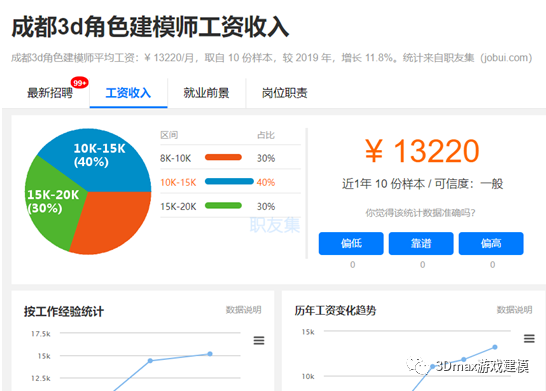 由于近年来国内游戏、动漫电影行业第二春的到来,建模师这个职位也渐渐进入大家的眼中。人才紧缺的现象越发明显,工资也是普遍偏高,很多人都想转行到这个行业,但工资真的有大家常说的10k+的高薪资吗,让我们来看看下面的数据。