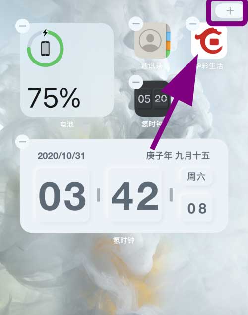 手机屏幕进入编辑模式,点击右上角的【加号】;