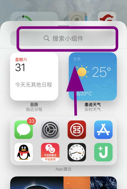 弹出添加小组件列表对话窗口,向上滑动【手机屏幕】;