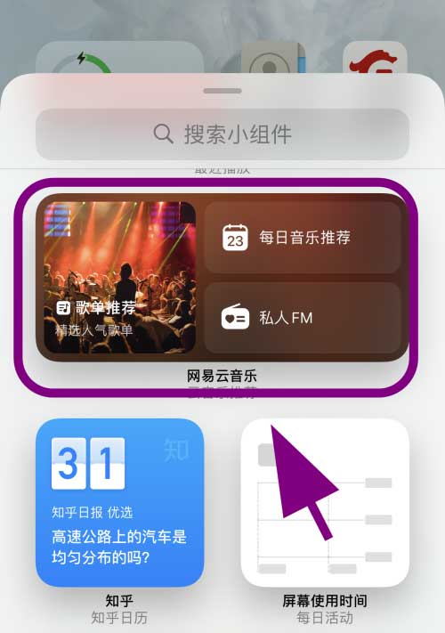 在小组件列表中找到并点击【网易云音乐】;