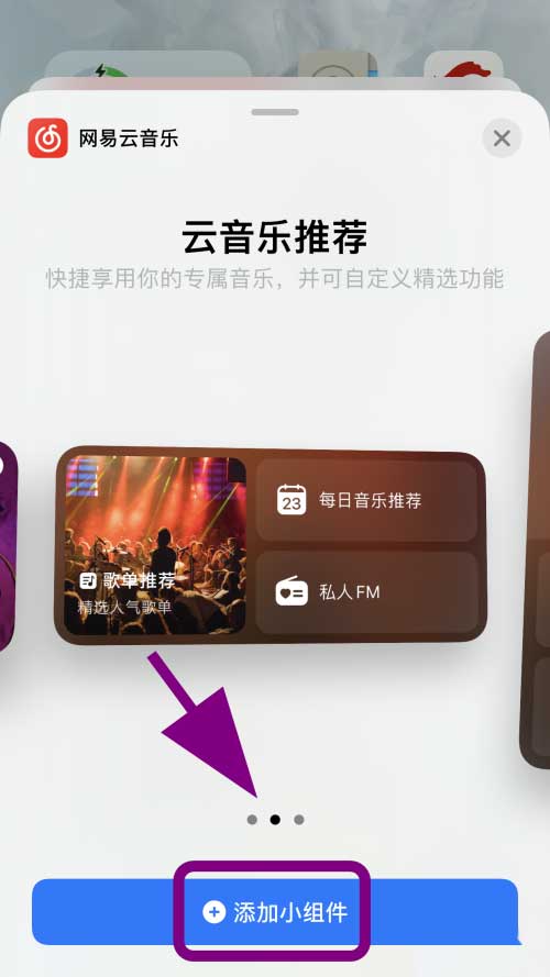 跳转网易云音乐小组件添加页面,点击底部的【添加小组件】;