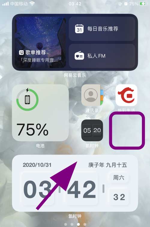 轻点手机桌面空白处,退出【手机屏幕编辑模式】,完成网易云音乐小组件的添加操作;