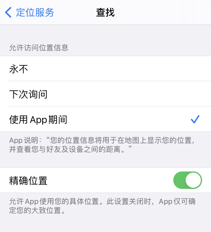 方式二:设置>>隐私>>定位服务>>某个应用>>去选中精确位置。