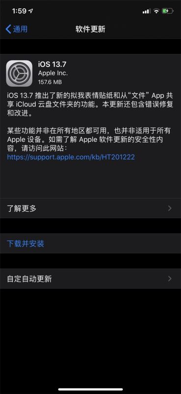 ios 13.7推出了新的拟我表情贴纸和从文件app共享云盘文件夹的功能,本更新还包含错误修复和改进。另外本次还增加了covid-19“暴露通知”系统。