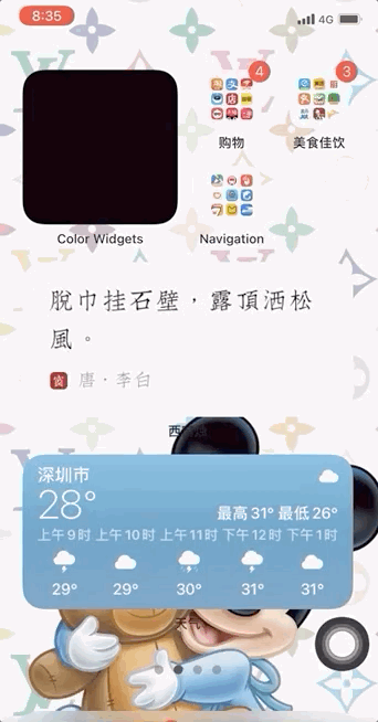 4. 小组件偶尔会出现闪屏现象:如下图所示。